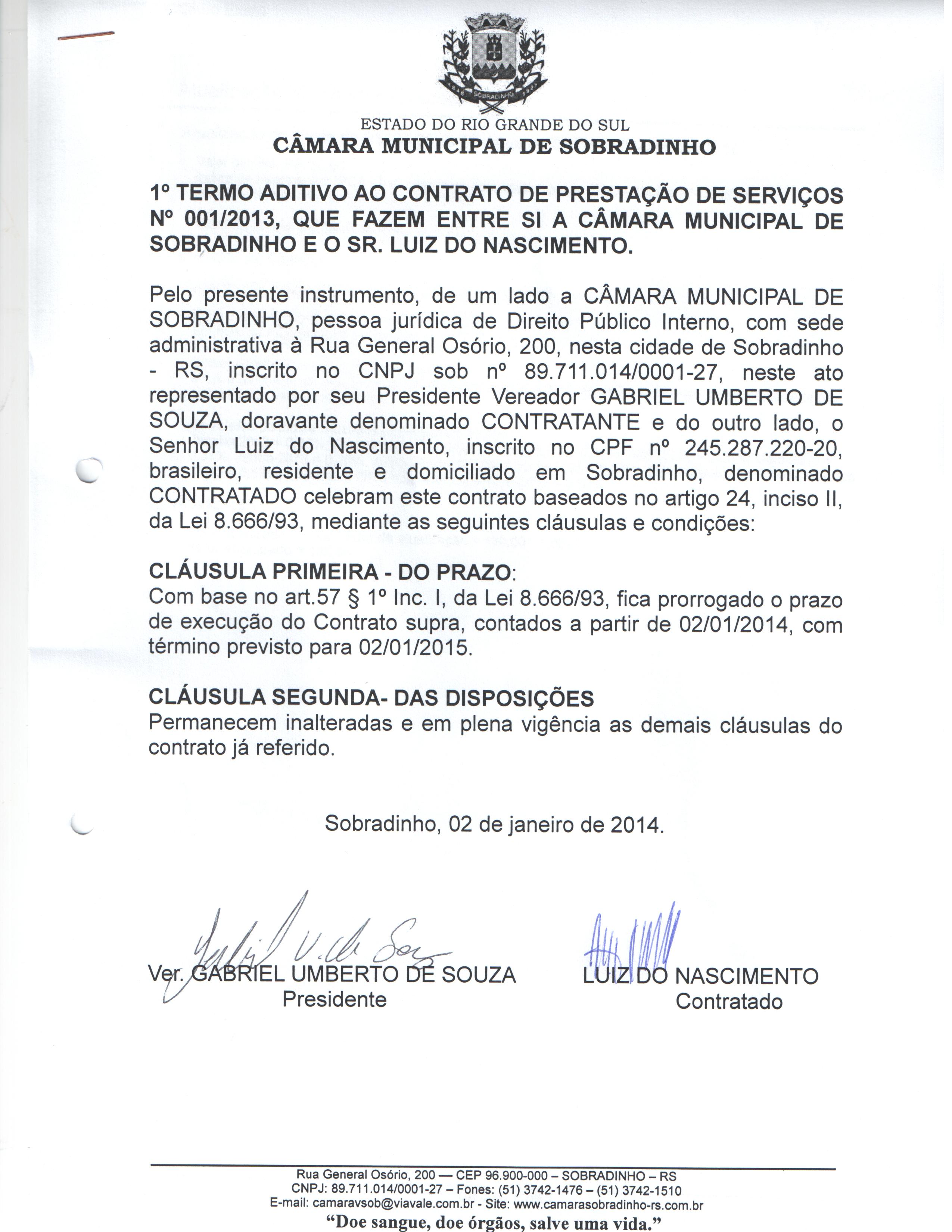 1º Termo Aditivo ao contrato de prestação de serviços 001